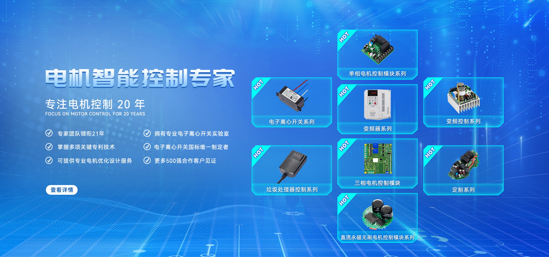 電機(jī)控制首選深圳復(fù)興偉業(yè)——主營電子離心開關(guān)、變頻模塊系列、變頻器系列、直流無刷驅(qū)動(dòng)控制模塊系列、三相電機(jī)控制系列、單相電機(jī)控制模塊系列、客戶定制系列等,產(chǎn)品覆蓋全球。服務(wù)熱線:0755-26063505